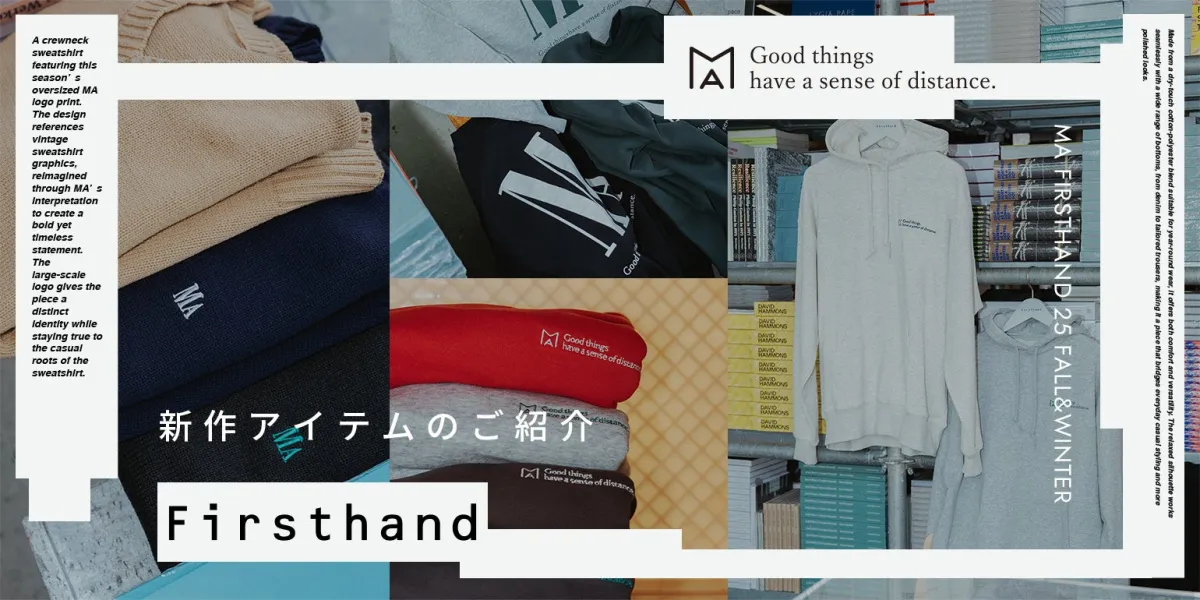 ユニセックスラインでは、特に注目したいのが「MA ベーシックロゴ刺繍 プルオーバーニット」。柔らかなコットンとアクリル素材を使用し、快適な着心地を実現。リラックスしたシルエットで、ボトムスを問わずコーディネート可能です。また、スウェットシリーズは、オールシーズン活躍する着やすさが特徴。特に“GOOD THINGS HAVE A SENSE OF DISTANCE”という刺繍が右胸に施されたフーディーやクルーネックスウェットは、シンプルでスタイリッシュな印象に仕上がっています。