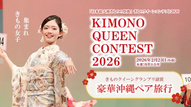 美しい着物姿で競う「きものクイーンコンテスト2026」、参加者募集中です!貴女もこの素晴らしい文化を学びながら、光り輝く舞台に立つ挑戦をしてみてはいかがでしょうか。詳細は公式HPをご覧ください。