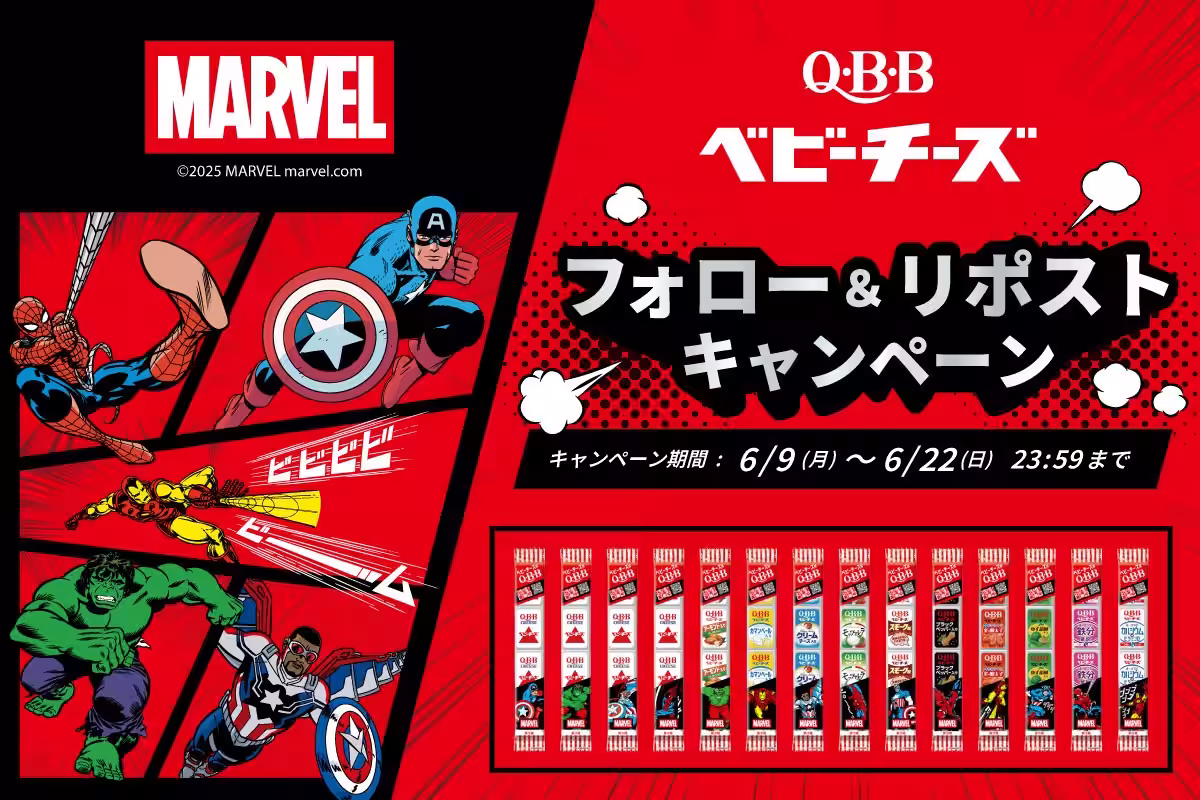 さらに、QBB公式Xでは、マーベルデザインベビーチーズの詰め合わせが当たるSNSキャンペーンも実施されます。こちらは2025年6月9日から6月22日までの期間中に、QBB公式アカウントをフォローして投稿をリポストすることで参加可能。このキャンペーンもお見逃しなく。