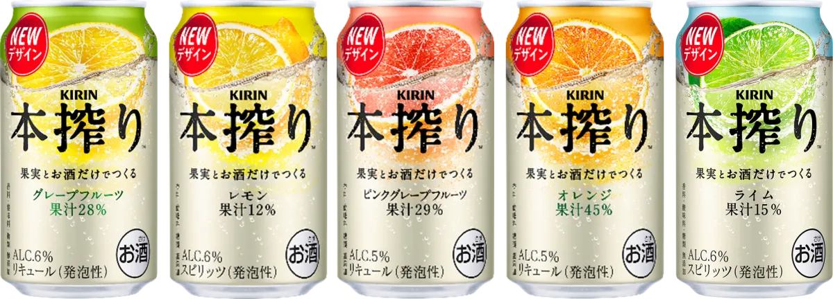 「本搾りTM」の中身には変更はありませんが、その美味しさは格別です。また、フレーバーごとに異なる果汁の割合にも注目が集まります。例えば、グレープフルーツは28%の果汁を使用し、さっぱりした味わいが楽しめます。一方のオレンジは15%の果汁を使用し、ジューシーな果実味が楽しめる仕上がりです。