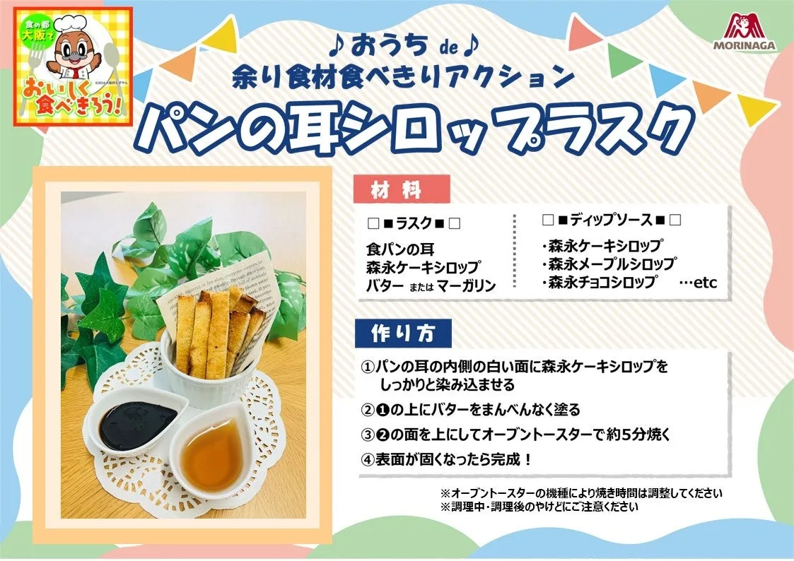 森永製菓ブースでは、私たちダイヤが提供するクックハウスの食パンの耳を使った「パンの耳シロップラスク」を試食することができます。このラスクは、余ったパンの耳に森永製菓のシロップやバターを塗り、オーブントースターで焼くだけの簡単なレシピで作られます。2025年10月25日(土)と26日(日)の2日間で、約5,000人の来場者にこの美味しさを提供する予定です。