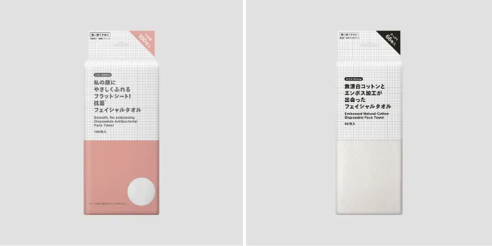 第一弾の「私の顔にやさしくふれるフラットシート!抗菌フェイシャルタオル」は、その名の通り肌に優しいフラットシート設計で、従来のフェイシャルタオルに比べて摩擦を低減。特に抗菌加工はそのままに、100枚入りという大ボリュームで、日常的にどれだけ使っても安心です。無駄なく使えるため、毎日のスキンケアにも最適です。