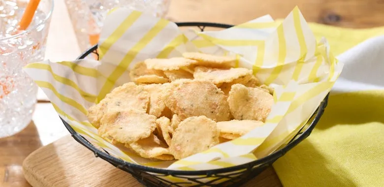 この商品は国産のじゃがいもを使用し、マッシュポテトとたまねぎフレークを練り込んで作られています。高温で焼いた後、カラリと揚げることで香ばしさが引き出されています。