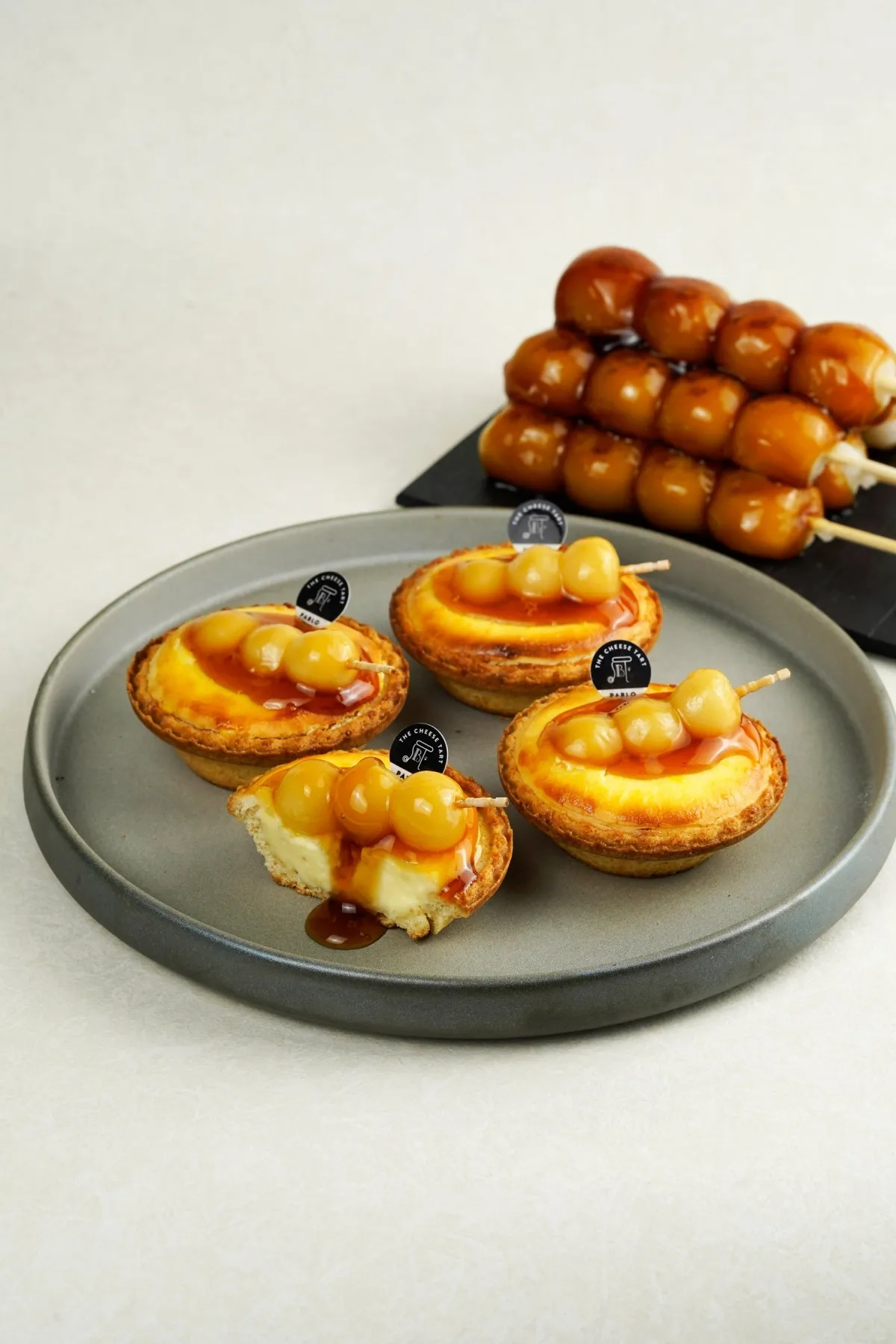 「PABLO mini みたらし団子」は、PABLO特製のとろけるチーズタルトの上に、ぷりっとした食感の小さなみたらし団子がトッピングされています。その上に香ばしいみたらしソースがかかり、チーズのクリーミーさと甘じょっぱいみたらしの味わいが絶妙なハーモニーを生み出しています。見た目も可愛らしく、思わず写真に収めたくなるスイーツです。