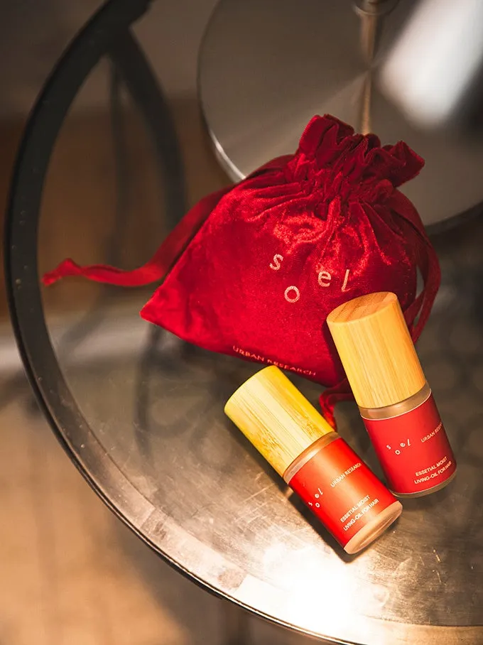 このオイルにはホリデームード漂う特別な「赤い巾着」が付いています。その鮮やかな赤色が印象的で、ギフトとしても、自分へのご褒美としても最適です。