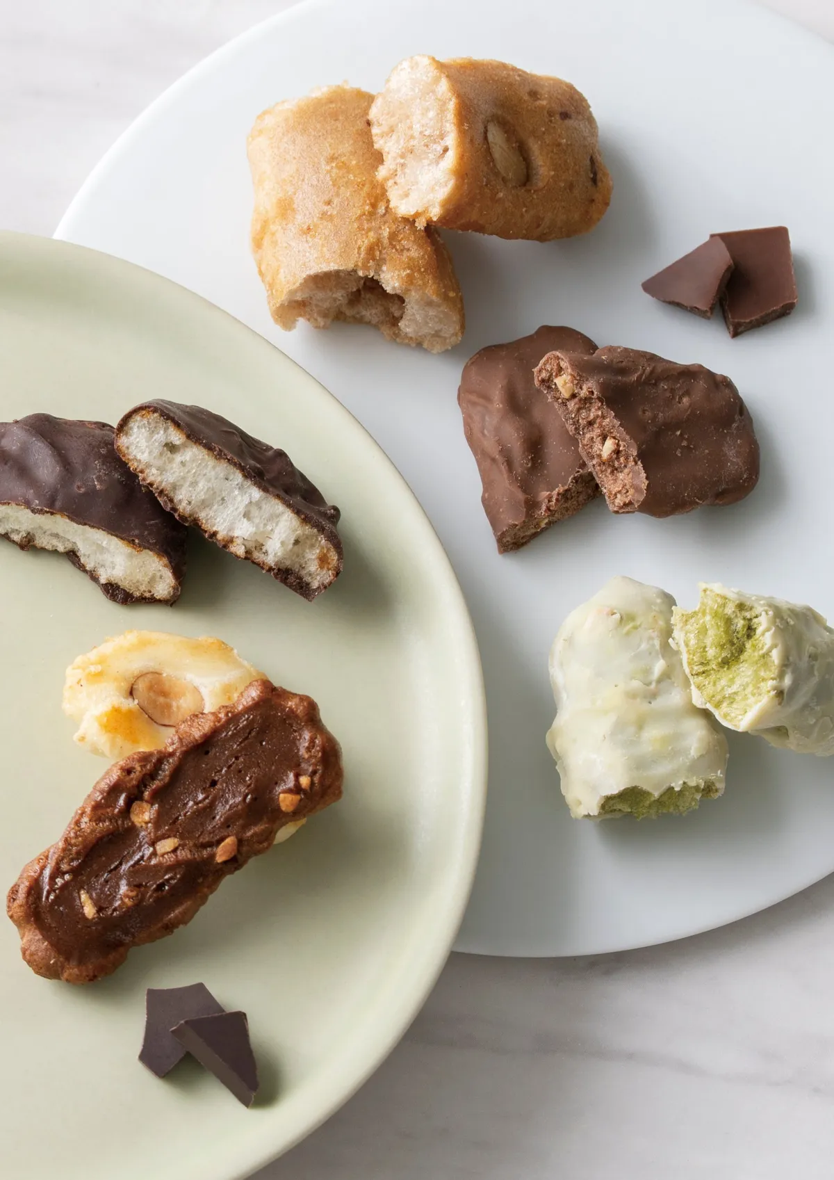 「ひとくちあられ ショコラミックス」は、ひと口サイズのあられとおせんべいを組み合わせたユニークなスイーツです。トレーに詰まったバリエーションは、甘いチョコレートでコーティングされたおせんべいやあられのほか、塩気が効いたあられも含まれており、一口食べるごとに笑顔がこぼれる一品となっています。さあ、食べ進めるごとに、つい手が止まらなくなる魅力が詰まった商品です。