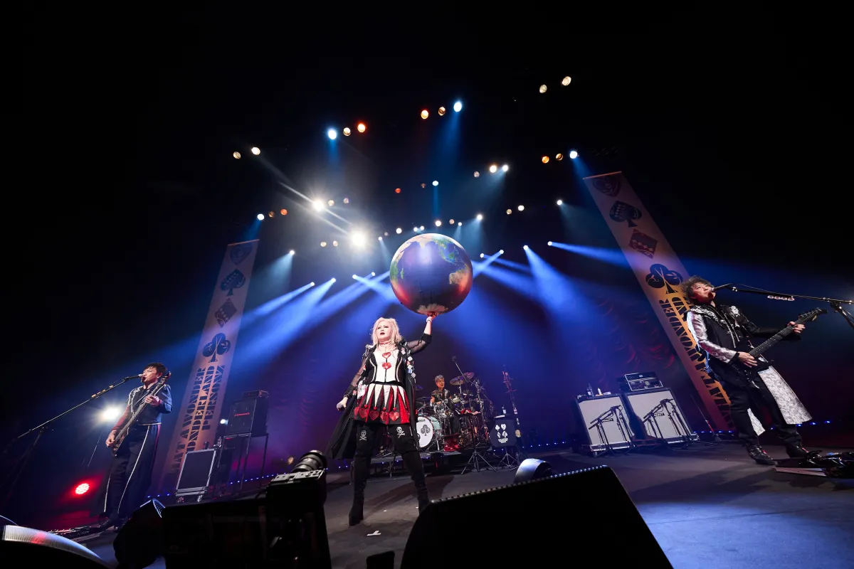 さらに、2曲目「SLEEPING BEAUTY」では楽器チームの笑顔が印象的で、観客との一体感が随所で感じられました。JILLが力強く回転し、金髪が揺れる様子は、彼女の存在感を一層引き立てました。