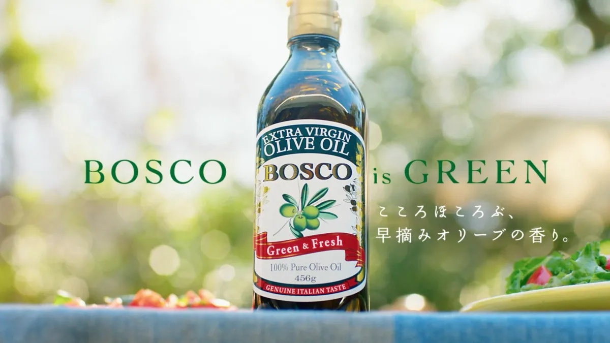 新CMのタイトル『BOSCO is GREEN』は、BOSCOの明るい緑色を意識したもの。大切な人との食卓で、BOSCOがどのように場を華やかにするのかを描いた内容です。多様な家庭の風景において、BOSCOによって次々と生まれる笑顔が印象的に描かれ、見ているだけで食欲がそそられます。特に、料理のシーンではBOSCOのオリーブオイルの風味が香ってくるような映像となっており、思わず試したくなるものばかりです。
