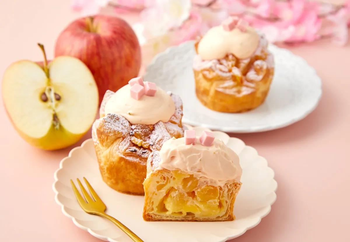 「Apple Cup さくら」は、柔らかな桜色と共にほのかに漂う桜の香りが特徴。このスイーツには、国産桜葉の塩気と旨味が効いたさくら味のクリームが使用されており、昨年より風味が進化しています。さらに、桜チョコがデコレーションされ、桜の花びらを見事に表現!