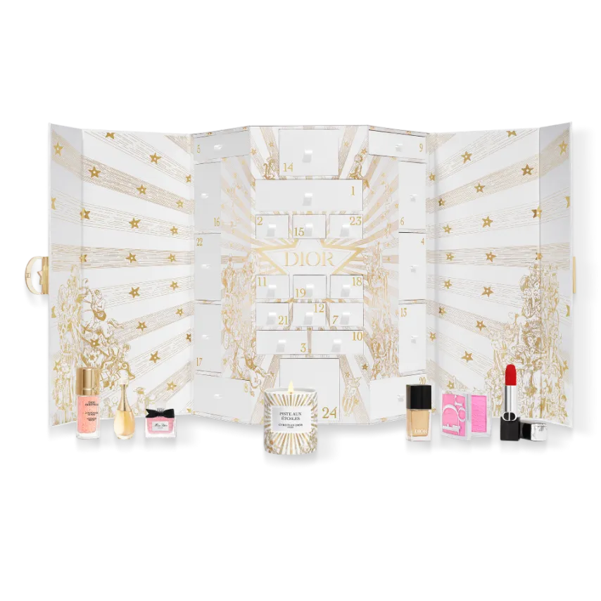 2025年10月10日(金)、ディオールのアドヴェント カレンダーが限定販売されます。このカレンダーは、クリスマスまでの24日間をカウントダウンし、ディオールの象徴的なフレグランスやキャンドル、メイクアップ、スキンケア製品のミニチュアが揃っています。特に注目すべきは、パリのモンテーニュ通りに位置するディオール ブティックのファサードが描かれたデザインです。アーティストのピエトロ・ルッフォが手がけたサーカスの世界が広がり、キラキラ輝くラッキースターに照らされた空間は、まさにディオールの魔法を感じさせます。