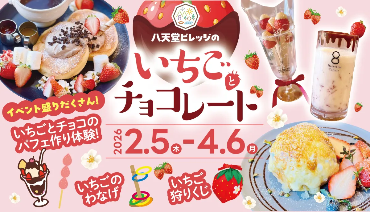八天堂ビレッジで楽しむ、いちごとチョコレートのフェア