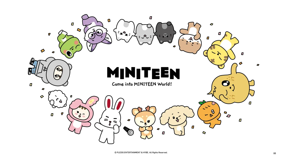 「MINITEEN」は、SEVENTEENのメンバーが直接デザインに関わって生まれた13人の魅力的なキャラクターたちです。それぞれの個性やファンカルチャーを反映しており、温かみのある魅力的な世界観とストーリーが特徴。これによって、世界中のファンから愛されています。彼らのブランドメッセージには「一緒ならいつでも楽しい、Come into MINITEEN World!」という言葉があり、友情や楽しい瞬間を共有することの大切さを伝えています。