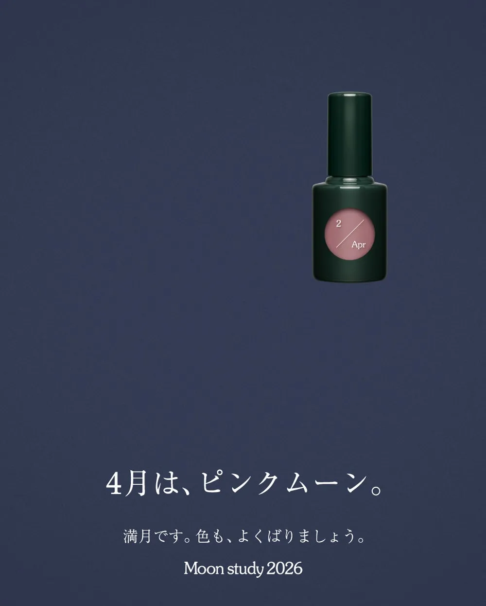 トータルビューティーカンパニー「uka」から、新月にインスパイアされた「uka Moon study 2/Apr」が2026年4月2日(木)に数量限定で登場します。満月の美しいエネルギーを感じられるこのネイルカラーは、「満月です。色も、よくばりましょう。」というコンセプトのもと、愛をもたらすピンクローズの色味が特徴。私たちの心と体と深く結びついている月を意識し、艶やかで豊かなネイルを楽しんでください。