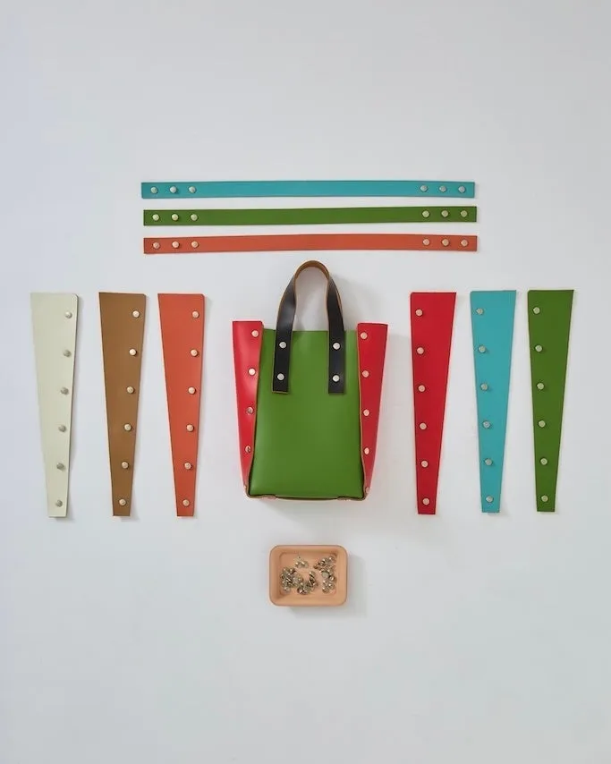 特筆すべきは、イベントに参加することで実際にバッグのフロントボディ、サイドボディ、ハンドルの3つの部分のカラーを選択できる点です。一般的な縫製方法ではなく、リベットで組み立てるこの独自の手法を採用しているため、他では手に入らない特別なバッグを手に入れることが可能です。自分自身で色とデザインを選ぶことで、より愛着の湧くアイテムになることでしょう。