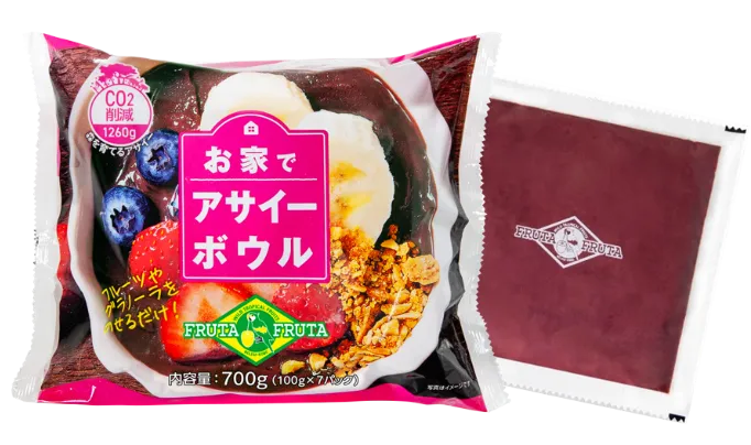 『お家でアサイーボウル7パック』は、一食ずつ個包装された冷凍アサイーボウルのセット。その特徴は、ミキサーやブレンダーを使わずに、流水で半解凍するだけで本格的なアサイーボウルがすぐに楽しめるという点です。手軽さと栄養価の高さが評価され、忙しい人々にもぴったりのアイテムとなっています。