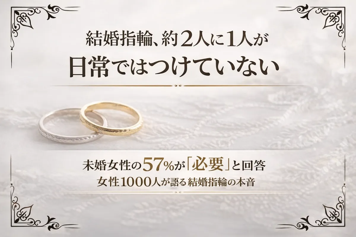 未婚女性の57%が結婚指輪を必要と感じる一方、既婚者の45%は日常使用せず