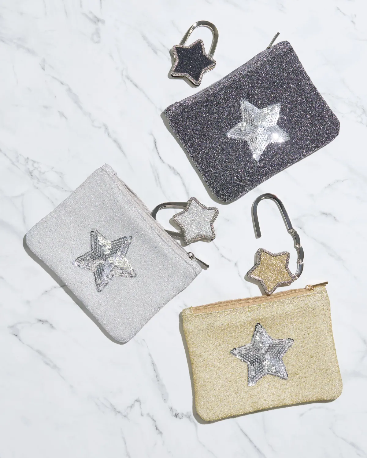 このバッグハンガーには、お揃いのミニポーチもセットに。ポーチはコスメや小物を収納するのにぴったりのサイズで、デイリー使いに最適です。おしゃれなゴールド、シルバー、ブラックの3色から選ぶことができ、ファッションに合わせてコーディネートできます。特に、スターモチーフは星好きにはたまらないデザインです。