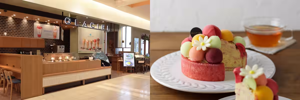 GLACIEL(グラッシェル)は、アントルメグラッセ・グラス専門店として特化しており、名前の由来はフランス語に由来しています。「グラシエ」はアイス職人、「グラス」は氷菓、「シエル」は空という意味を持ち、青空のように澄んだブランドカラーをイメージしています。口の中に広がるアイスの美味しさを想起させるお店です。