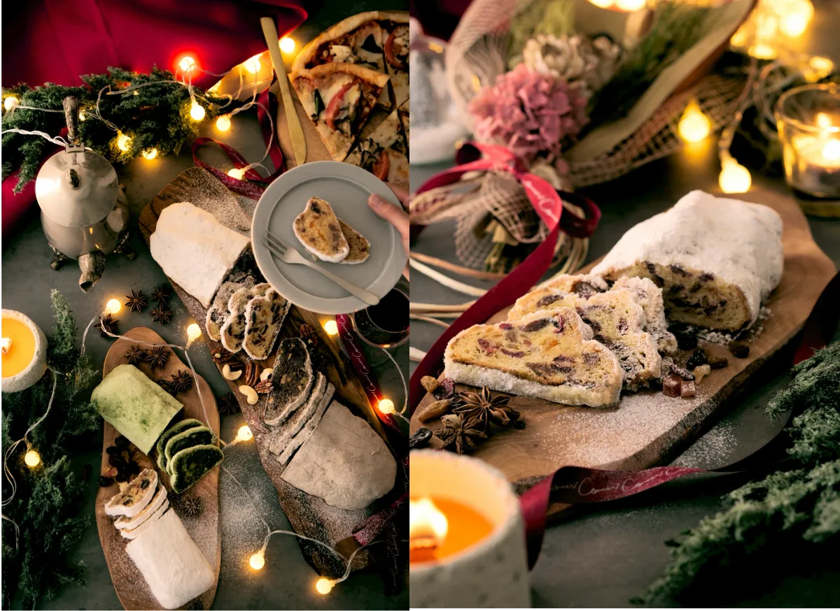 新たに加わった“抹茶シュトレン”は、厳選した抹茶の香りと、ほっくりとした栗の甘みが特徴的で、ゆずのアクセントが和の風味を演出。穏やかな午後に温かいお茶と一緒に楽しんでいただきたい逸品です。