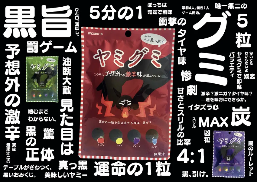2025年11月、愛知県刈谷市に本拠を置く合同会社クレンズ・ラボが新たに手掛けたエンタメ系ロシアンルーレットグミ「ヤミグミ」が発売されることが決まりました。この新しいお菓子はただのグミではなく、見た目はすべて真っ黒で、どの粒も同じように見えながらも、1粒だけ“ヤバい味”が隠れているという、驚きと笑いを詰め込んだ一品です。