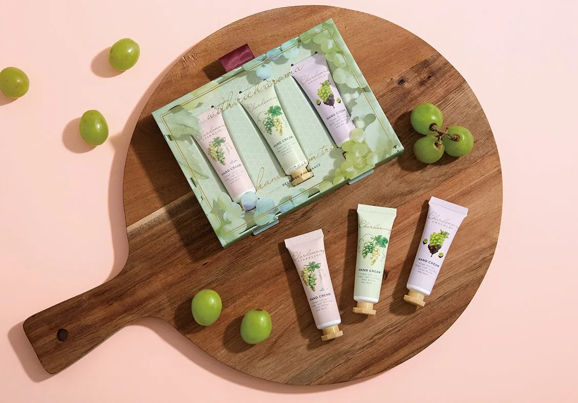 ここ最近、気温が下がり、乾燥する季節がやってきました。手肌の保湿が欠かせないこの時期、かわいいデザインのハンドクリームがあると嬉しいですよね!そんな中、株式会社グローバルプロダクトプランニングが新しく発売したのが、果汁味あふれるシャルドネの香りを楽しめるミニハンドクリームボックス『シャルドネハンドクリームトリオ』です。