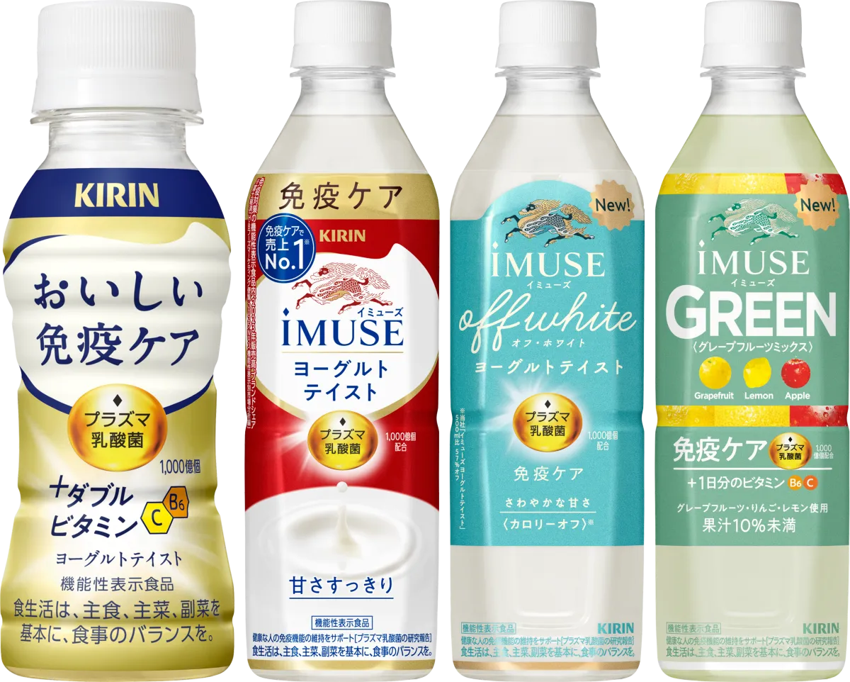 同日に、キリン iMUSEシリーズもリニューアルされます。「キリン iMUSE ヨーグルトテイスト」は、視認性を高める赤と白のデザインに進化し、機能性の信頼感を引き上げます。また、「キリン iMUSE オフ・ホワイト ヨーグルトテイスト」は、日常的に飲みやすくした味わいに改良され、さらには「キリン iMUSE グリーン」も飲みやすさを向上させた新しい風味を感じさせるものとなります。