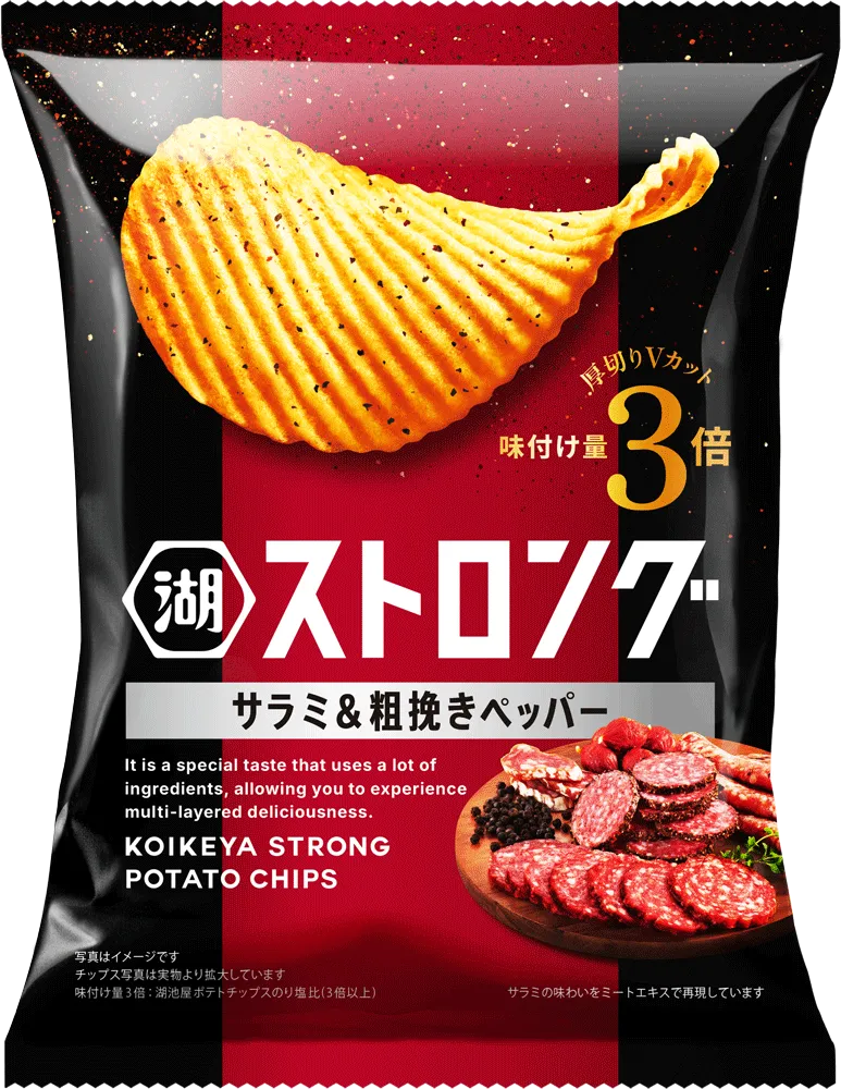 秋の訪れを感じるこの季節、濃厚で贅沢な美味しさを楽しめる、「湖池屋ストロング サラミ&粗挽きペッパー」を手に取ってみてはいかがでしょうか。美味しさを堪能しながら、心温まる秋のひとときをお過ごしください。