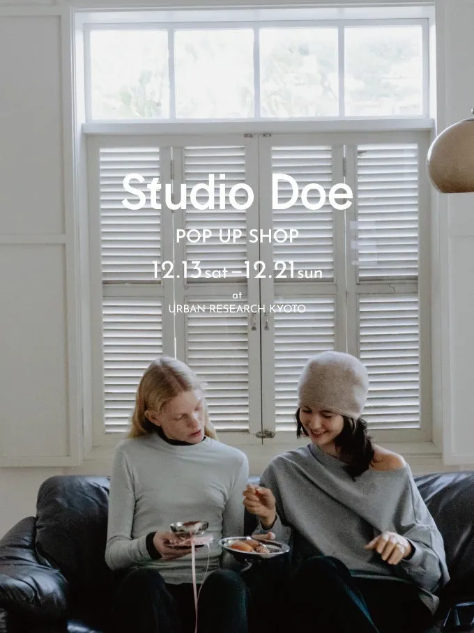 2023年12月13日(土)から12月21日(日)まで、アーバンリサーチのフラッグシップストア、URBAN RESEARCH KYOTOにて、台湾の注目ブランド「Studio Doe」のPOP UP SHOPが開催されます! この貴重なイベントでは、同ブランドの美しいシルエットのボトムスや最新のホリデーコレクションがそろいます。「Studio Doe」は、2012年に設立されたブランドで、シンプルで洗練されたデザインが特徴です。アジア圏のファッショニスタたちに広く支持されており、そのスタイルは多くの人々に自信と個性を与えています。