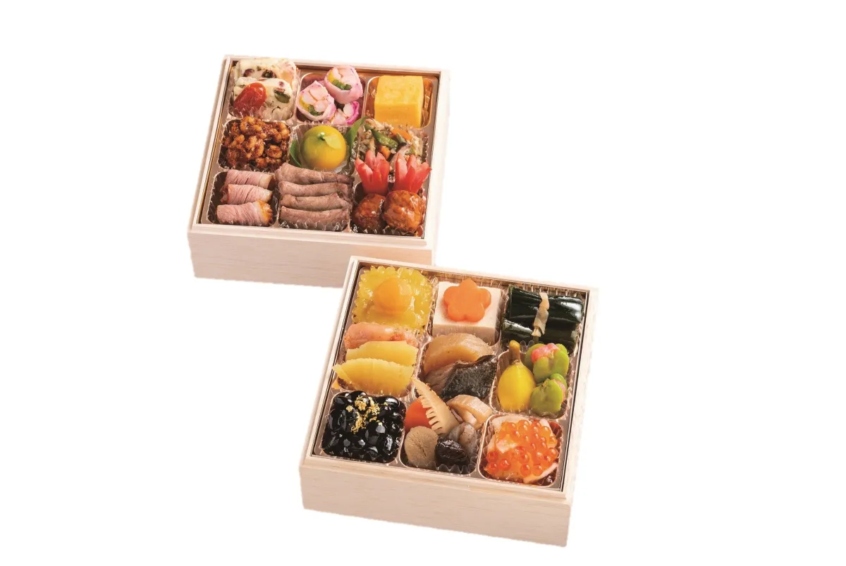 京料理「花かがみ」が監修した和風おせち料理や、京料理はり清やメゾンヒビノなどの名店とのコラボによる三段重もラインアップに加わります。こちらはそれぞれの名店が持つこだわりが感じられる特別なおせちです。