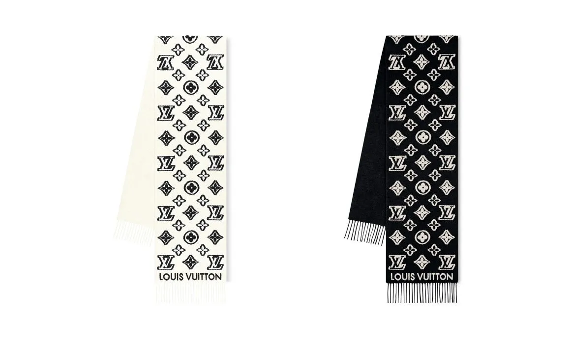 最初にご紹介したいのは、クラシカルなアイコンを巧みにアップデートした「マフラー・LV 3D」です。価格129,800円というプレミアムなこのマフラーは、ウールとカシミヤをミックスした高級素材で仕立てられています。特筆すべきは、モノグラムパターンが際立った、立体感のあるデザイン。繊細なフィルクーペ技法によって仕上げられた両サイドは、微妙に異なる表情を見せ、トレンディかつエレガントな印象を与えてくれます。