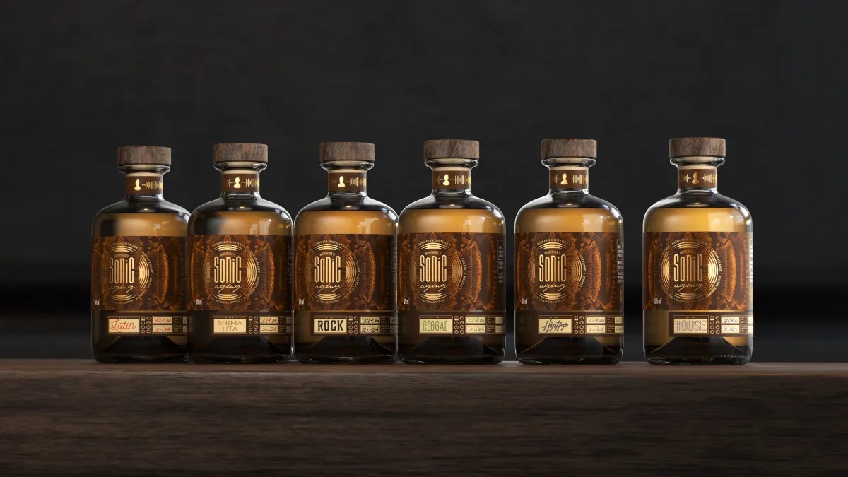 「NISHIHIRA's Sonic Aging」は、奄美群島でのみ製造が許可されている特別な黒糖焼酎を使用しています。それぞれの音楽ジャンルによって発生する振動が、樽の中の原酒を揺らし、風味や香り、色において個性豊かな変化をもたらします。西平酒造の杜氏は、まるで音楽を創造するように酒を醸造し、消費者には味わう楽しみを提供したいと考えています。