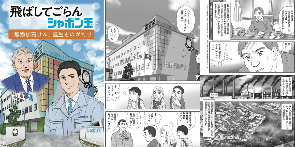無添加石けんの先駆者であるシャボン玉石けん株式会社が、マンガ『飛ばしてごらんシャボン玉 ― 「無添加石けん」誕生ものがたり』を刊行しました。この作品は、同社の企業理念「健康な体ときれいな水を守る。」に基づき、無添加石けんの誕生から現在に至るまでの歴史を情緒豊かに描写しています。
