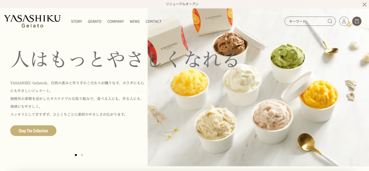 新たに生まれ変わったYASASHIKU GelatoのECサイト。サステナブルで美味しいジェラートを通じて、ぜひ皆さまも幸せな体験を共有してください!
