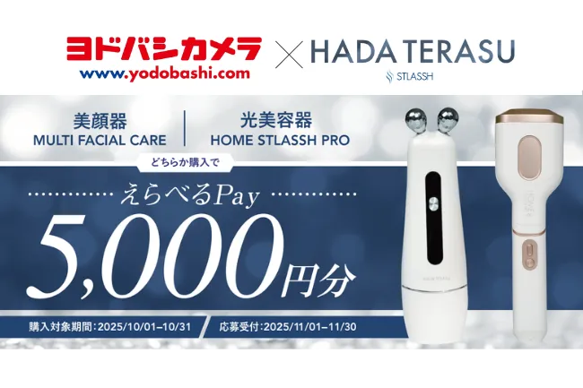 10月1日(水)より、脱毛サロン「ストラッシュ」監修のスキンケア&ビューティーブランド「HADA TERASU(ハダテラス)」が、全国のヨドバシカメラ17店舗にて販売を開始します。これに伴い、キャッシュバックキャンペーンも実施されるため、注目が集まっているこの新商品をご紹介します。