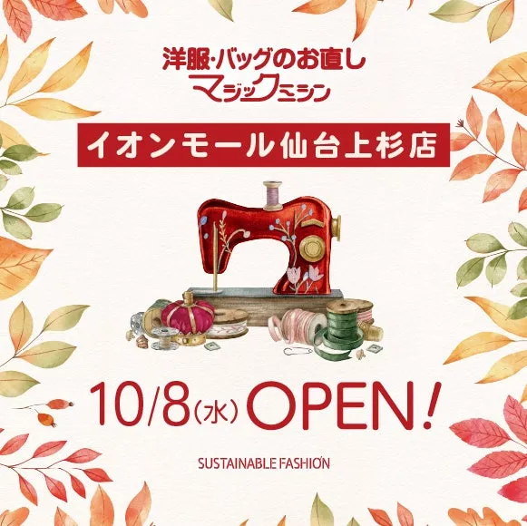 2025年10月8日(水)、宮城県仙台市に「マジックミシンイオンモール仙台上杉店」がオープンしました。このお店は、洋服やバッグのお直しを行うリフォーム専門店で、イオングループが展開する人気店の一つです。