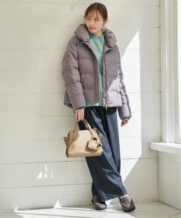 まずご紹介するのは、ダウンジャケットと暖かいワイドパンツを組み合わせたスタイルです。