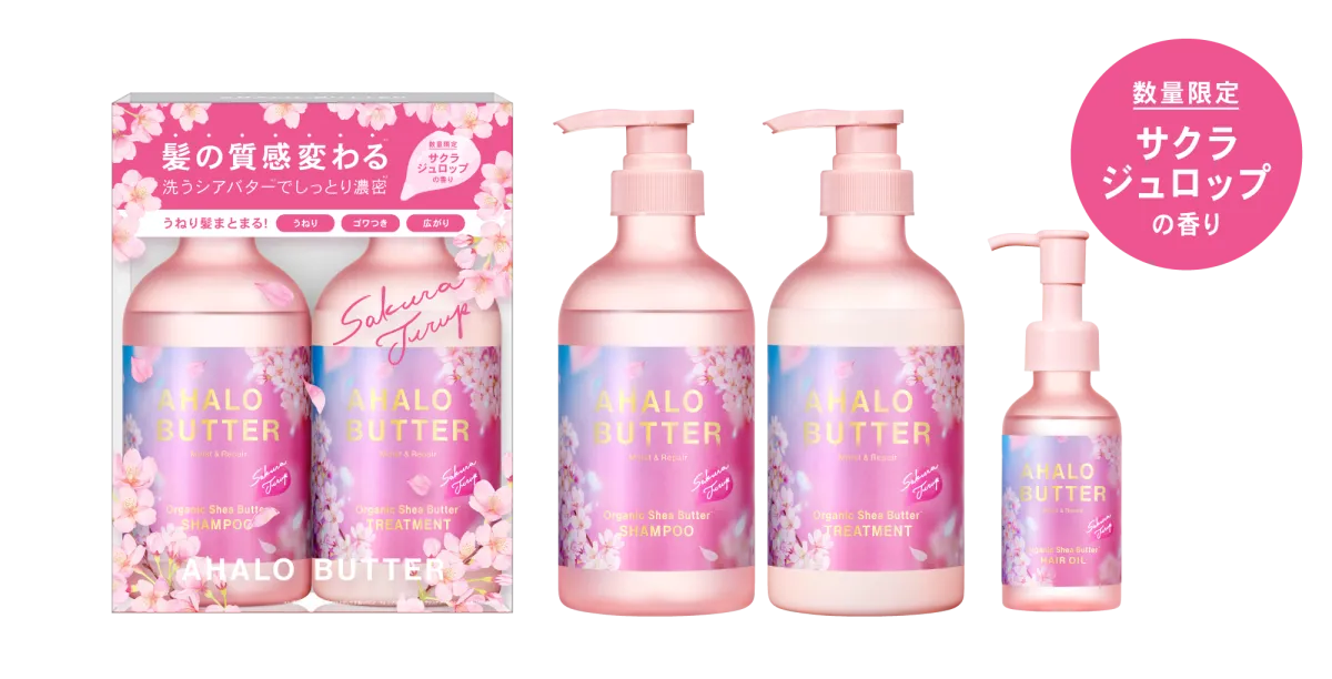 アハロバターの「サクラジュロップの香り」を用いた限定商品は、髪やボディをしっかりケアしてくれる優れたアイテム。この香りに包まれながら、春のひとときを楽しみましょう。