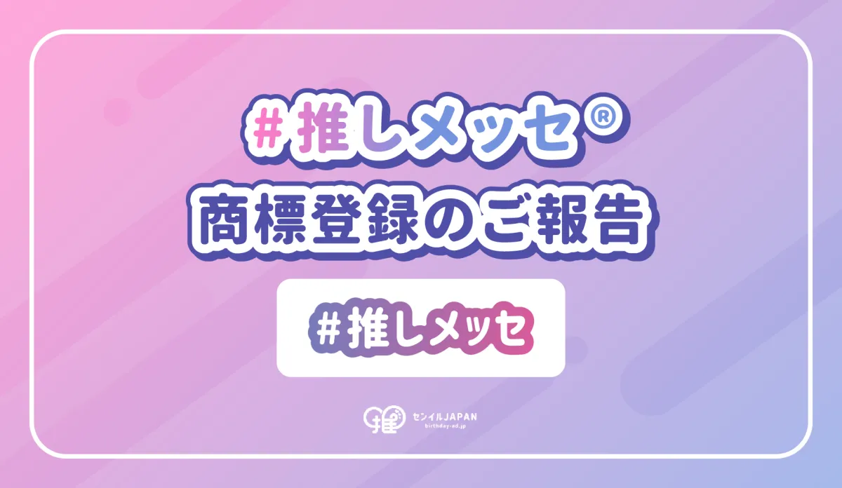 ファンのエネルギーを新たな形で形作る「#推しメッセ®︎」が、ついに商標登録されました。運営を手掛けるセンイルJAPAN(株式会社IW)は、この画期的なサービスを広め、ファンと推しの絆をさらに深める取り組みを進めていきます。