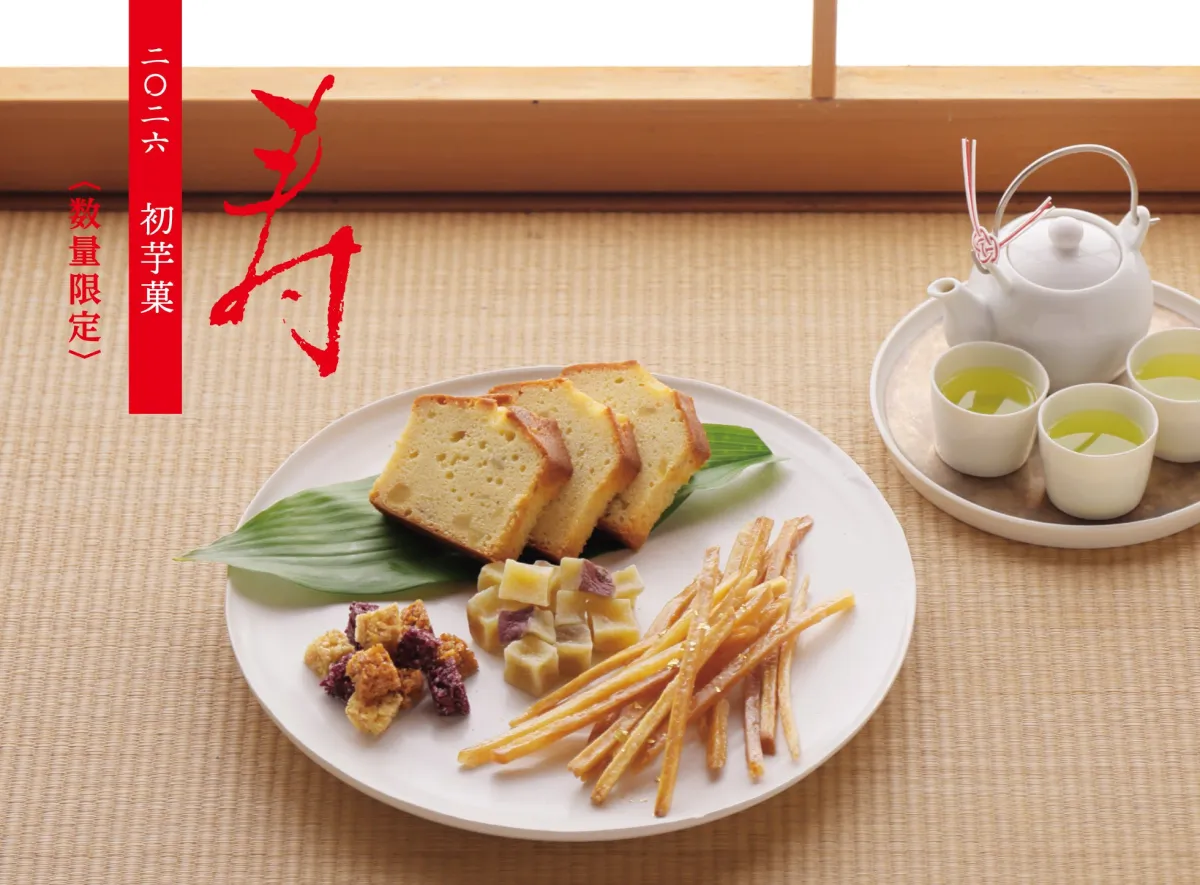 さらに、特撰芋けんぴには贅沢にも金箔が添えられています。豊かさの象徴でもあり、華やかな一品として、お祝いの席をより特別なものにしてくれます。色鮮やかなお菓子たちと共に、新年をお祝いしてください。