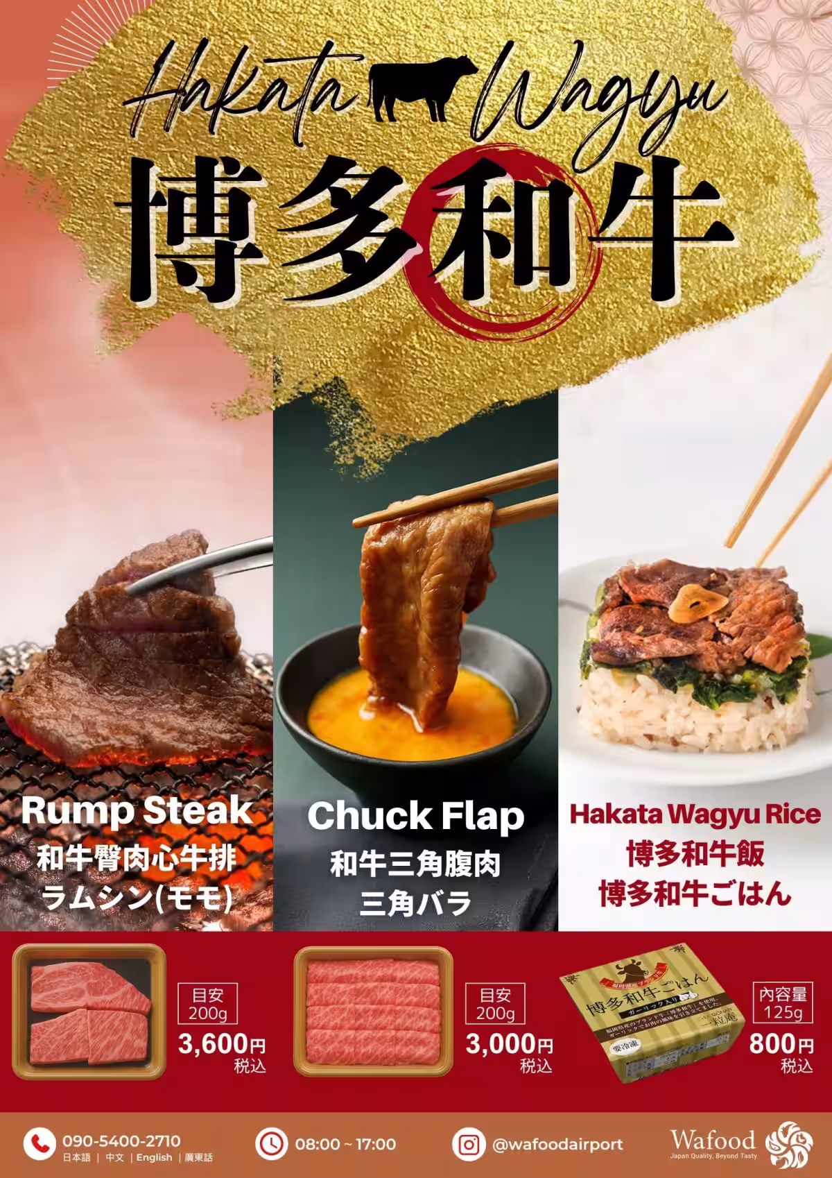 まず、シンガポールと香港向けにマーケティングを行い、ビジネス出張や観光で訪れる外国人にもアプローチします。「Wafood Airport」では、さまざまな和牛商品を展開予定で、すき焼きや焼肉向けの博多和牛、さらには肉加工品もラインナップに加わります。