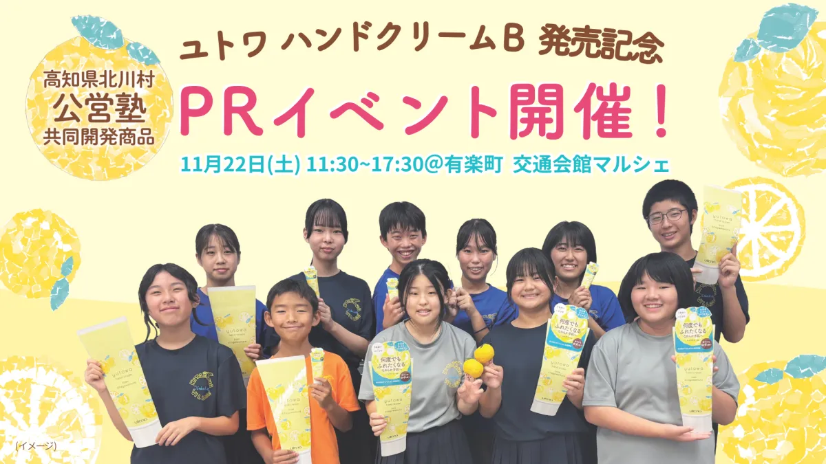 今回のPRイベントは、株式会社ウテナと高知県北川村の公営探求塾に参加する子どもたちのコラボレーションから生まれました。子どもたちの「生まれ育った村の良さを多くの人に知ってもらいたい!」という熱意が、ウテナとドラッグストアのウエルシアグループと結びつき、ハンドクリームが誕生しました。この心温まるプロジェクトは、村の名産である「ゆず」を活かし、地域の魅力を伝えることを目的としています。