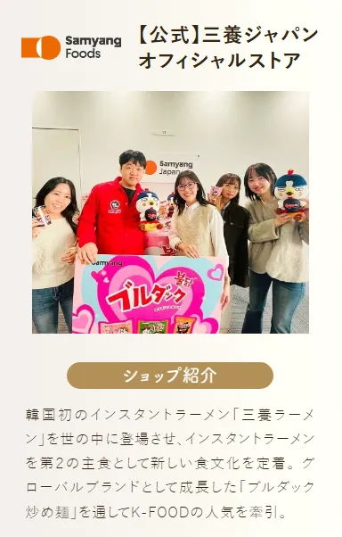 三養ジャパンのECサイト『三養ジャパンオフィシャルストア』が、2025年のQoo10 Awardsで食品部門のカテゴリー賞を獲得しました。これは、Qoo10内の食品カテゴリーにおけるお客様満足度や売上の成果に基づくもので、同サイトは業界で特に優れたショップに与えられる名誉です。