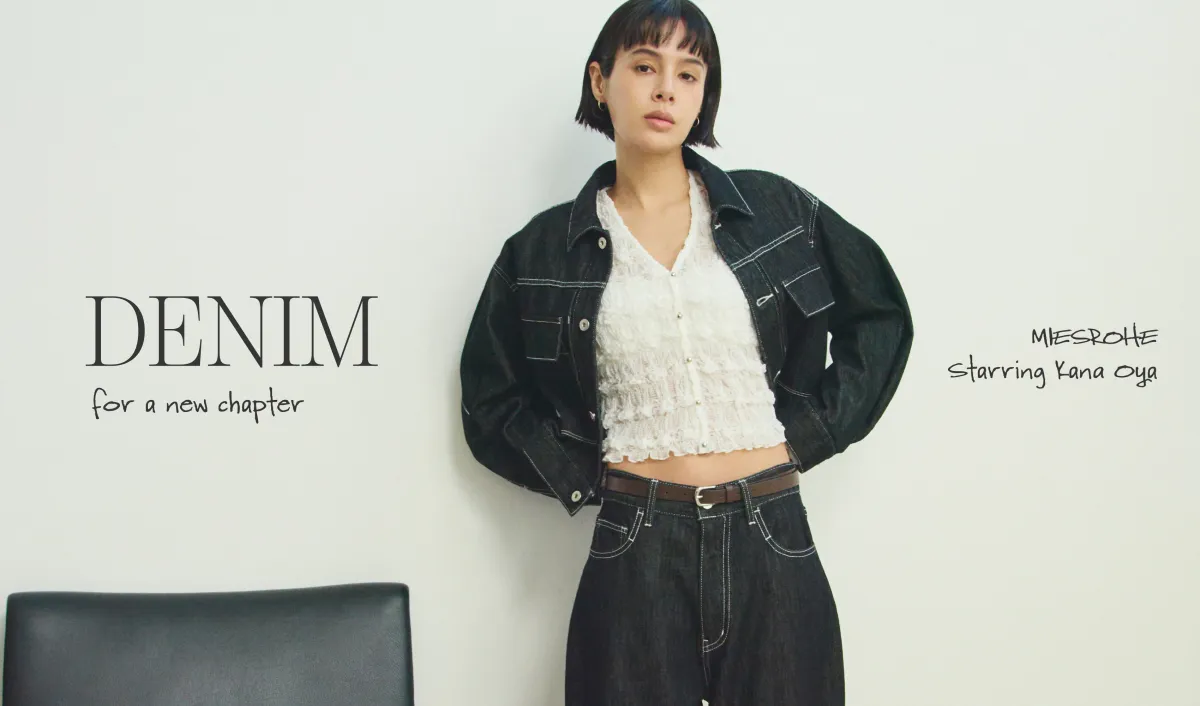 株式会社マッシュスタイルラボが展開するレディースファッションブランド「MIESROHE」が、2023年3月5日より最新のデニムコレクションをオフィシャルオンラインストアとECデパートメントストア「USAGI ONLINE」にて発売しました。このコレクションのテーマは「DENIM for new chapter」です。これにモデルの大屋夏南が登場し、その見事に着こなす姿が多くのファッションファンを魅了しています。