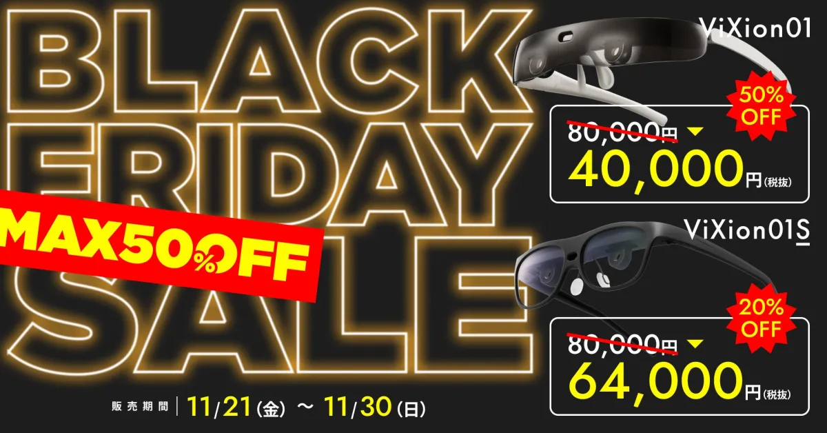 2025年11月21日(金)から11月30日(日)までの10日間、オートフォーカスアイウェア「ViXionシリーズ」の特別セールが開催されます。この期間中、ViXion01SとViXion01が過去最大の割引率で販売され、最大50%オフという驚きの価格で手に入るチャンスです。