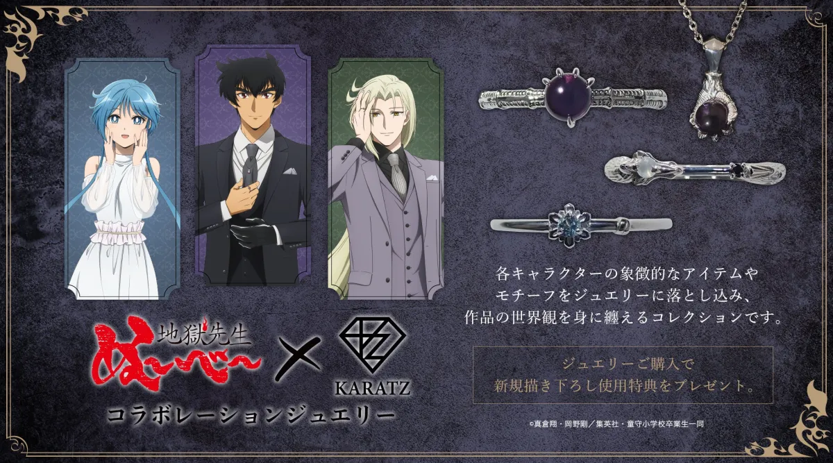 新アニメ『地獄先生ぬ〜べ〜』と、宝石専門店KARATZとのコラボジュエリーが話題の中心になっています。これまでの作品とは一味違ったジュエリーたちが揃っており、ファン必見のアイテムが盛りだくさんです。コレクションには、各キャラクターの象徴的なモチーフを取り入れたリングやペンダントが展開されており、作品の雰囲気を身にまとえるデザインとなっています。