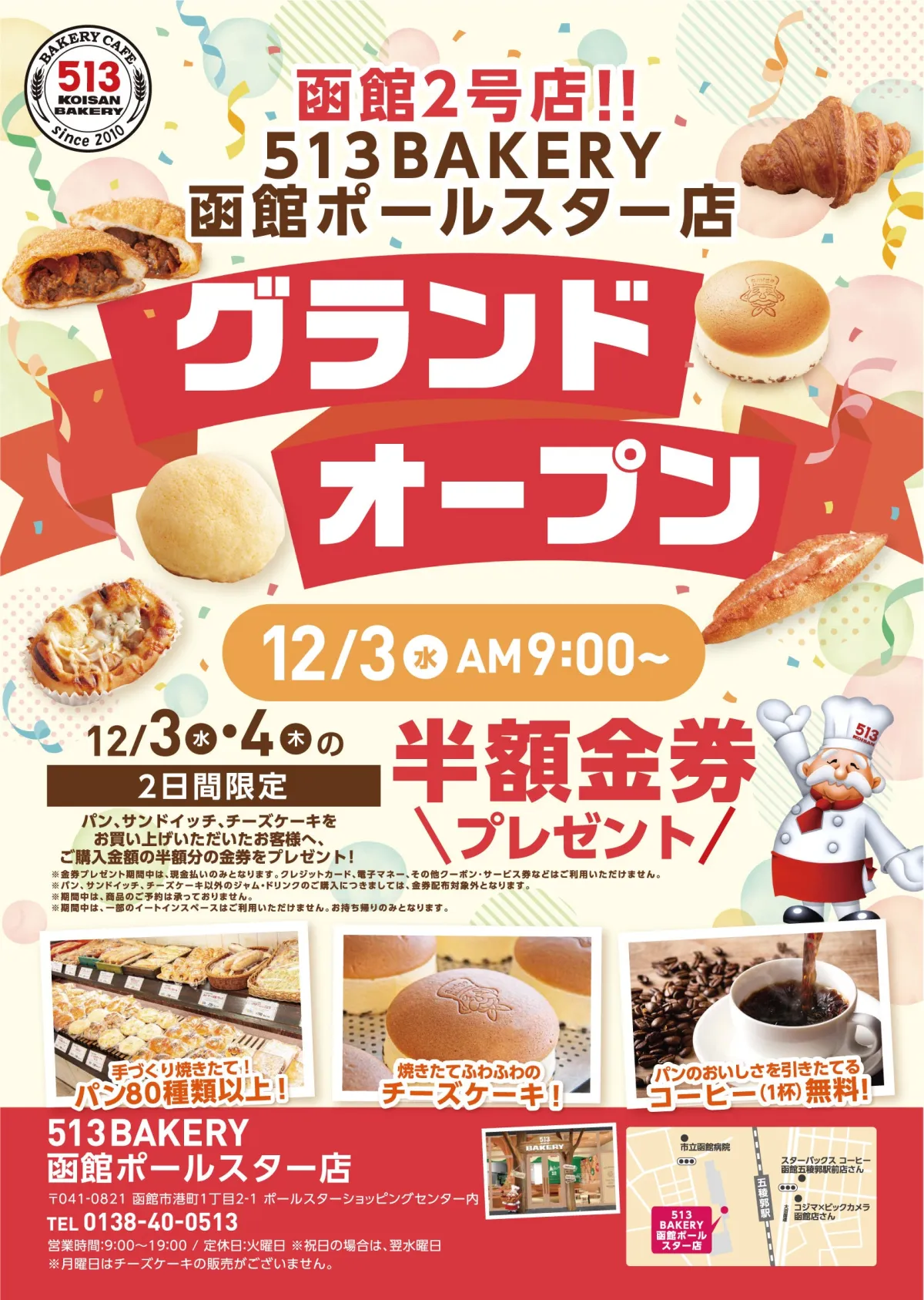 - - 対象店舗: 513BAKERY函館ポールスター店
