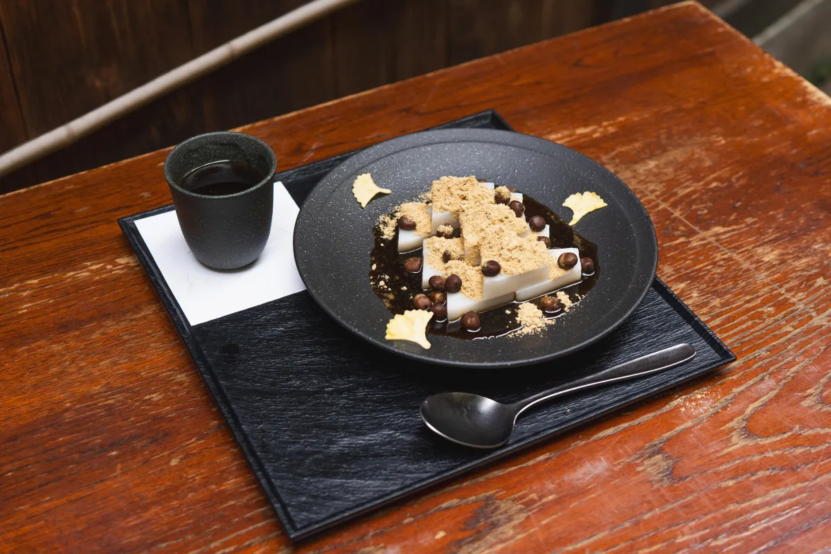 この「ほうじ茶づくし」は、ますます肌寒くなる秋にぴったりのデザートです。目の前に運ばれてきた瞬間から漂うほうじ茶の香りに包まれ、五感が研ぎ澄まされることでしょう。見た目にも美しいこのデザートは、味だけでなく、心までくつろがせてくれるのが魅力です。まさに、香りからはじまる贅沢なくず餅タイムを、存分に楽しむことができるのです。