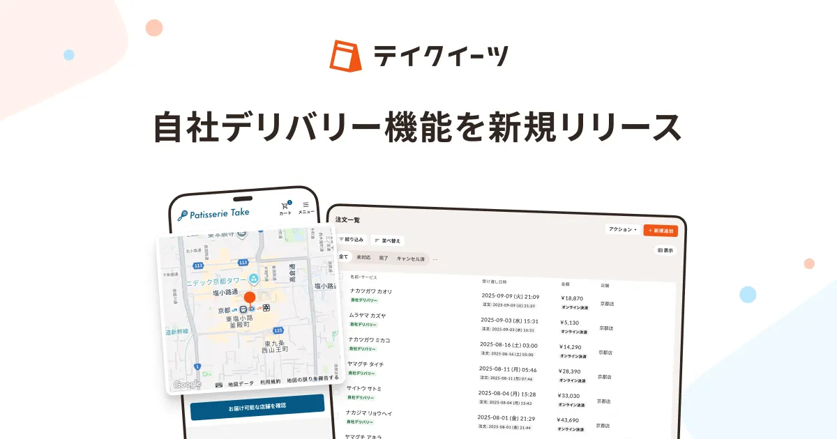 そこで、株式会社ランプが提供する飲食店向けのSaaS「テイクイーツ」では、テクノロジーを駆使して、地方店舗が持続的にデリバリー事業を展開できる社会を目指しています。新たにリリースされた自社デリバリー機能により、注文から配達までをスムーズに管理できるため、飲食店はコストを抑えつつオンラインでの注文を受け付けることが可能になりました。この機能の導入で、小規模店舗でも安心してデリバリー事業を運営できるようになります。