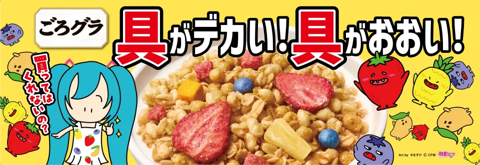 初音ミクが登場する新CM「ごろグラ買ってもいい? 篇」は、可愛らしい彼女の姿を楽しめるだけでなく、実際に「ごろグラ」の美味しさを体感したくなる内容です。長年のファンにも新たに興味を持つ人にも、彼女が伝えたい“おいしさ”を、ぜひこの機会に味わってみてください。米や果物の栄養がたっぷり詰まった「ごろグラ」を、初音ミクと共に楽しみましょう!