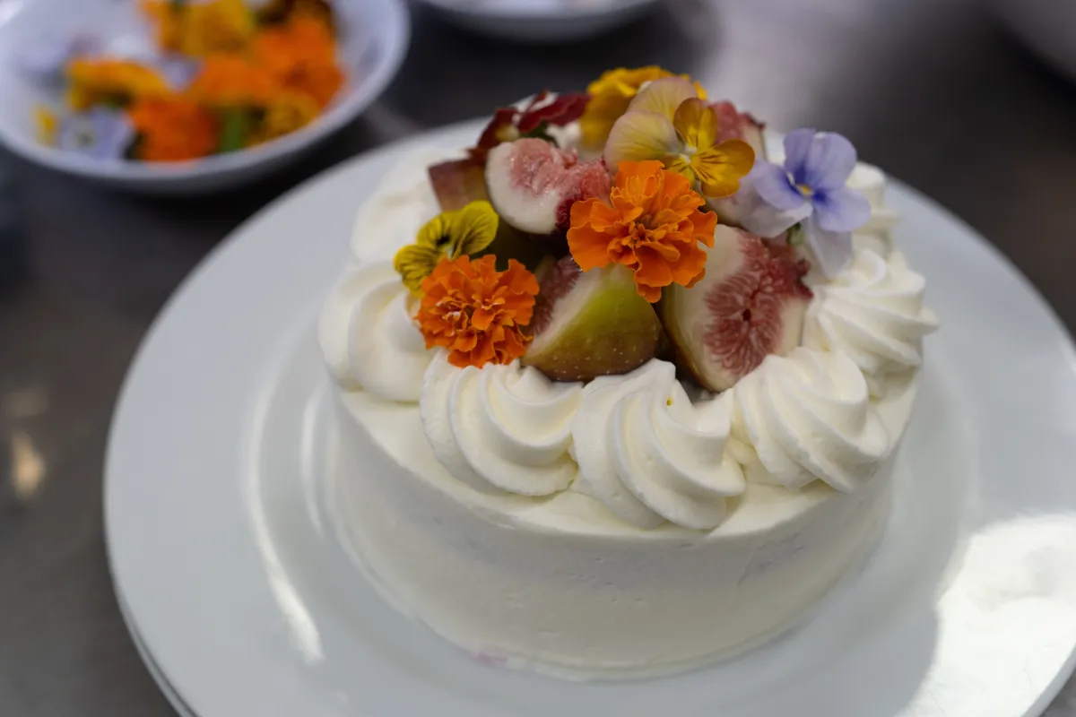 参加した児童たちは、八木シェフと岩田パティシエの指導のもと、愛知県産のイチジクや、津島市近郊で栽培されているローゼル、さらには食用花であるエディブルフラワーなど、地元の新鮮な食材を使用してケーキを作りました。授業では、学んできた「地産地消」の理念を再確認し、フードマイレージや地域生産者との関係についても学ぶ機会が提供されました。